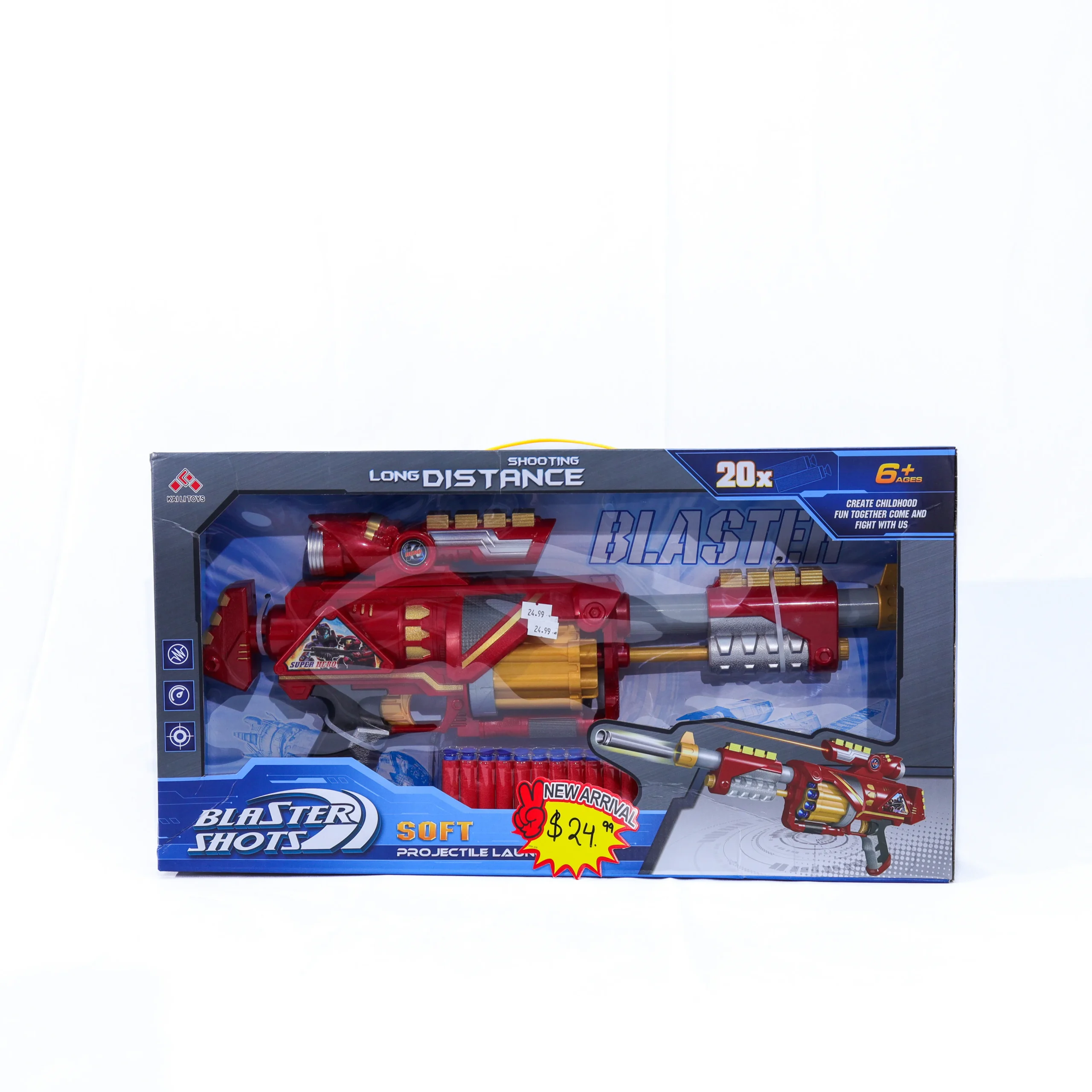 Infrared soft bullet blaster toy with fast trigger and foam darts.