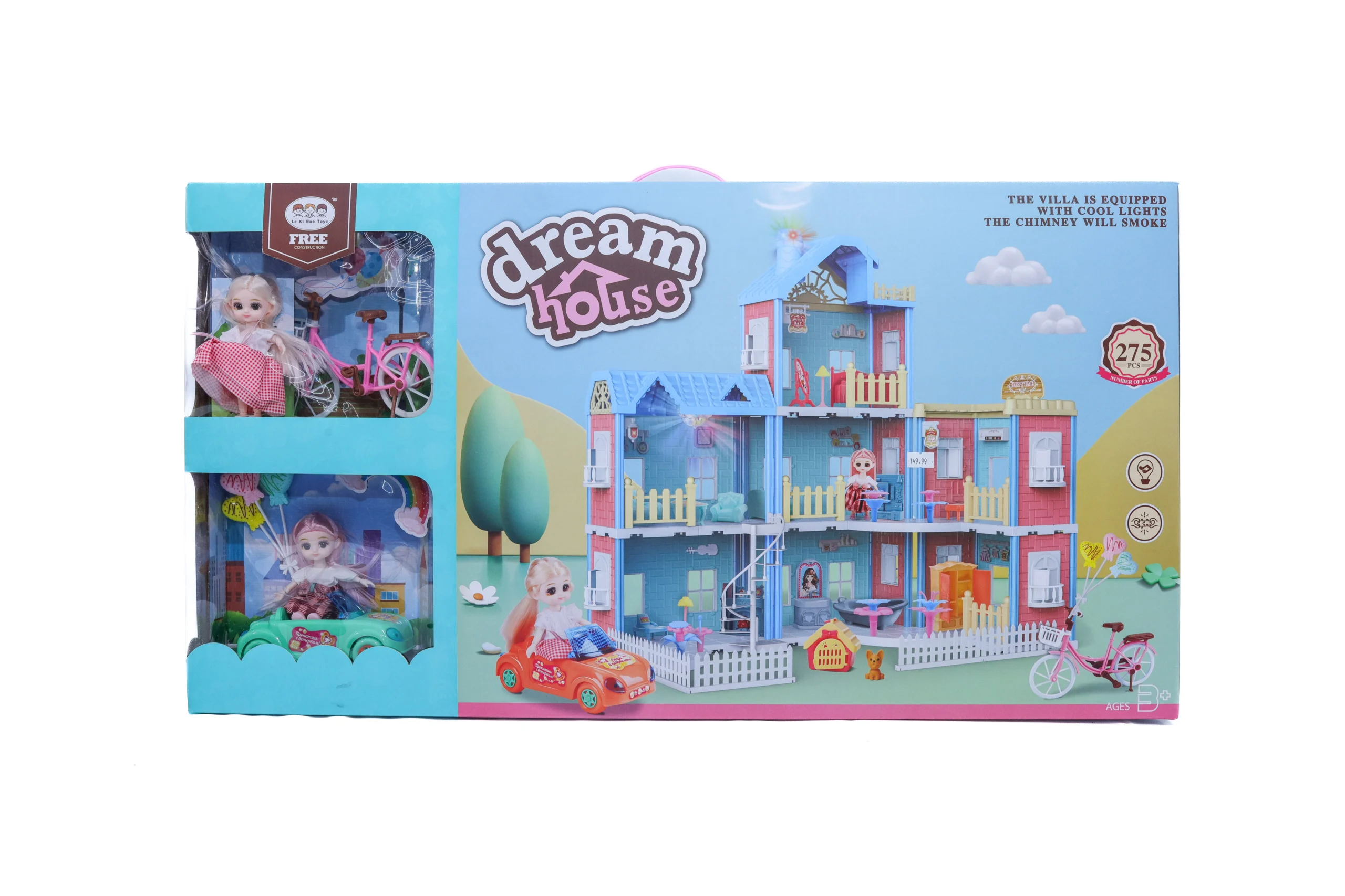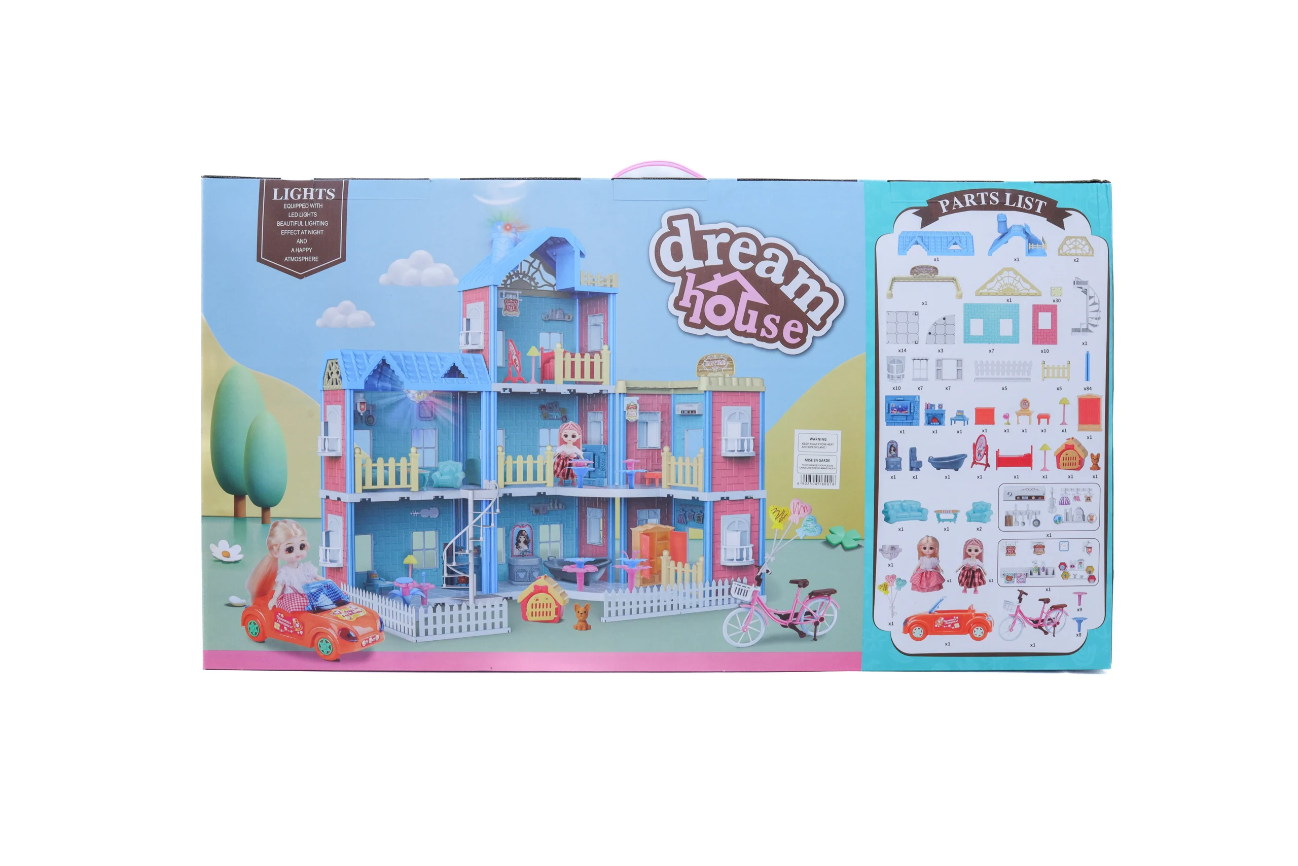 Dream House Dollhouse Play Set with Lights – Multi-Level Villa (Ages 3+)