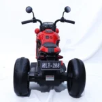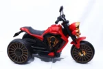 A classic red kids electric ride-on motorcycle with a stable three-wheel design. Ideal for ages 3–7. Available at Twinkle Town toy store in Hamilton, Ontario.