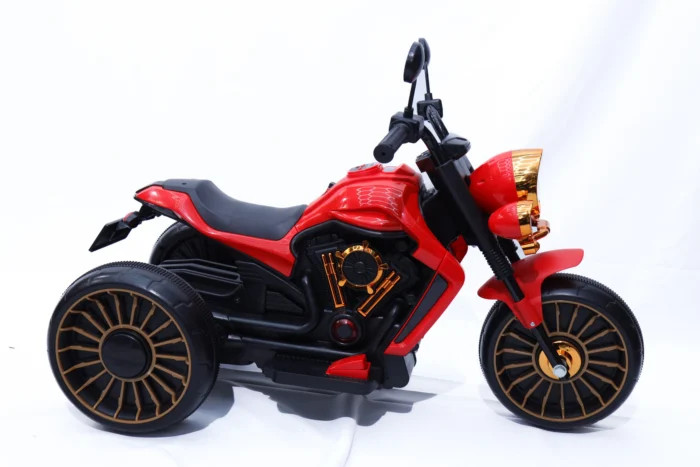 Add a bold and classic touch to playtime with this kids electric ride-on motorcycle featuring a stable three-wheel trike design. Finished in vibrant red with black and gold accents, this ride-on toy is designed for children ages 3 to 7 who enjoy active and imaginative play.
