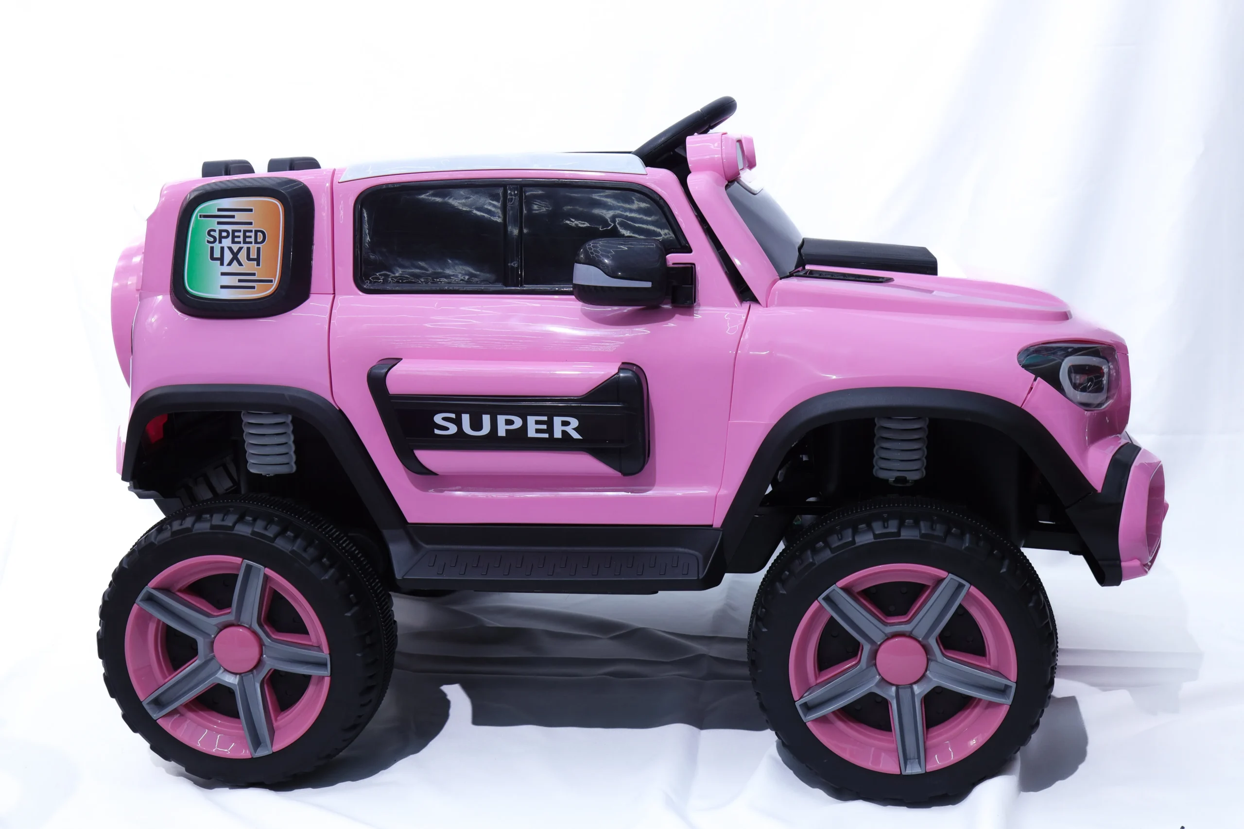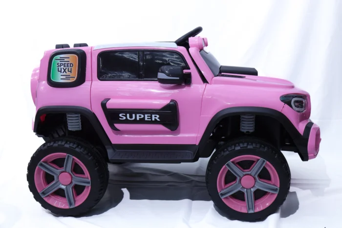Give kids a fun and confident driving experience with this kids electric ride-on SUV designed in a bold off-road style. Featuring a spacious four-wheel design and a modern pink finish, this ride-on car is ideal for children ages 3 to 7.