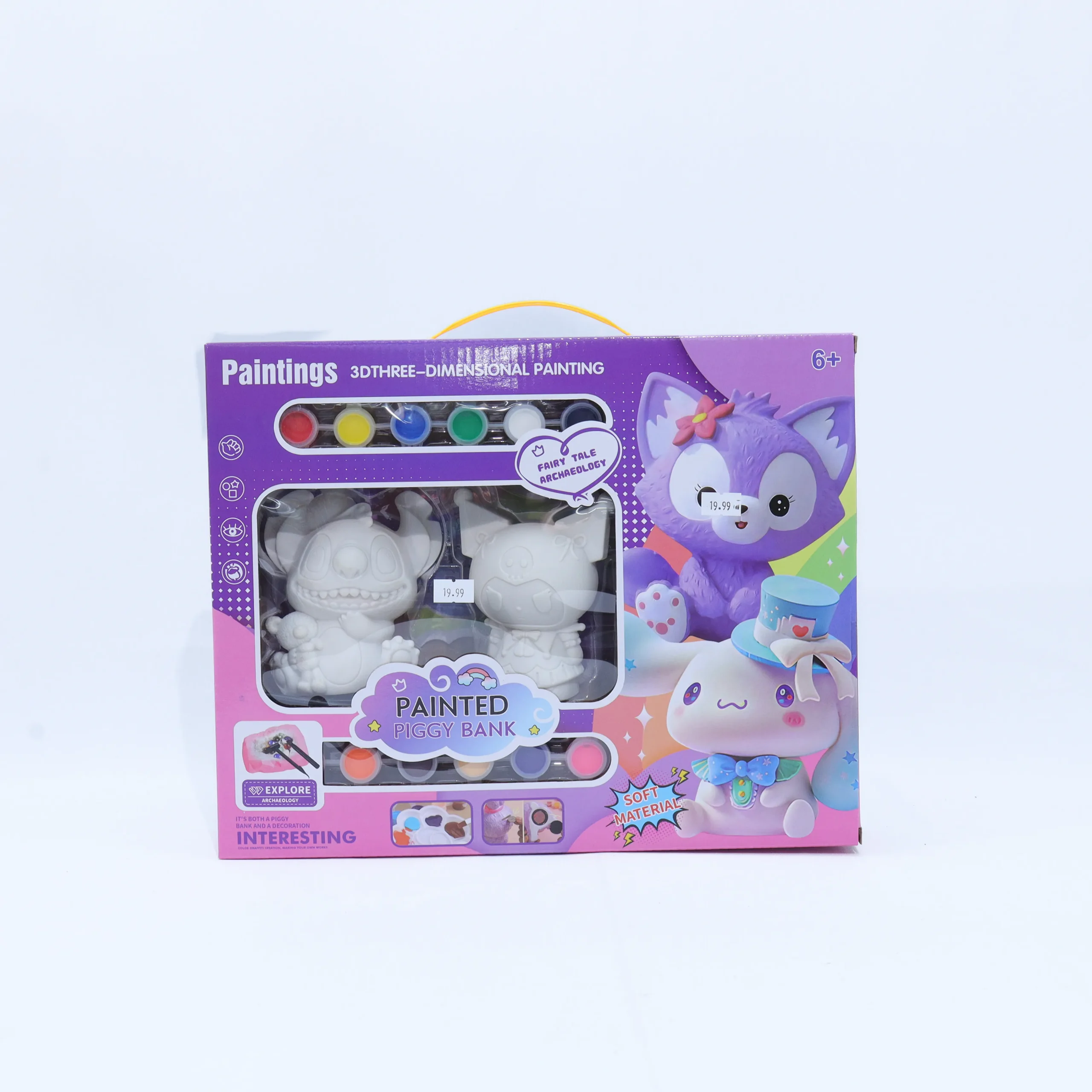 DIY painted piggy bank set for kids with fun characters and creative play.