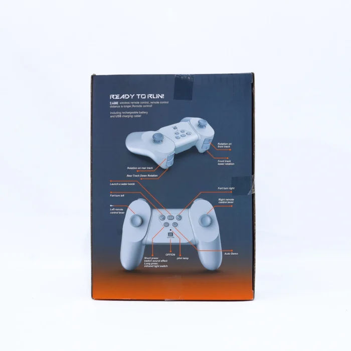 Designed for action-packed play, this remote control tank features realistic lights, sound effects, rotating turret action, and spray simulation for immersive combat play. Built with durable tracks and responsive controls, it delivers smooth movement and exciting maneuverability.