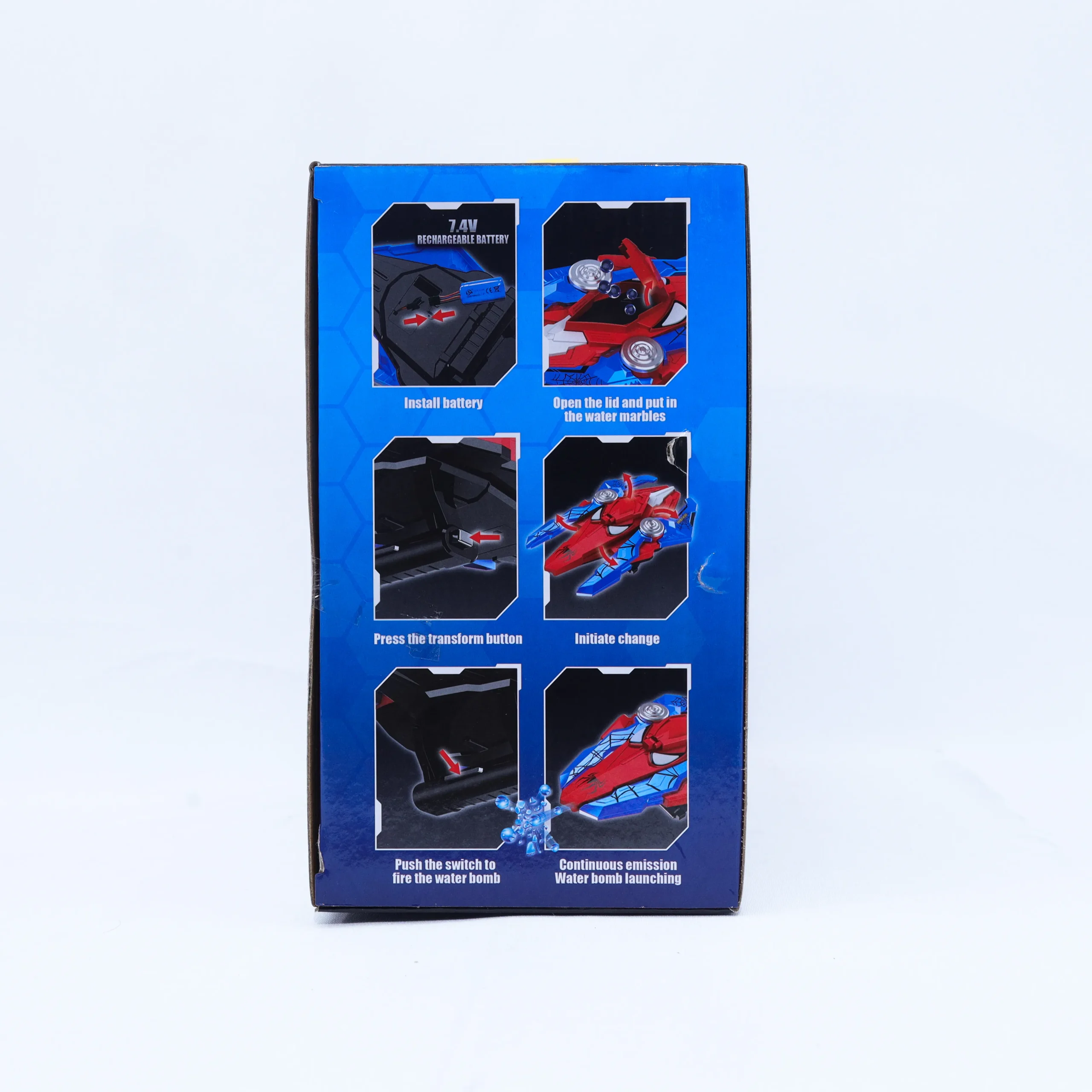 This superhero-inspired launcher features a shield-style design that transforms between two modes, allowing kids to activate change and enjoy continuous water blasting action. Built with a rechargeable battery and durable materials, it delivers fast, fun water battles while encouraging imaginative superhero roleplay.