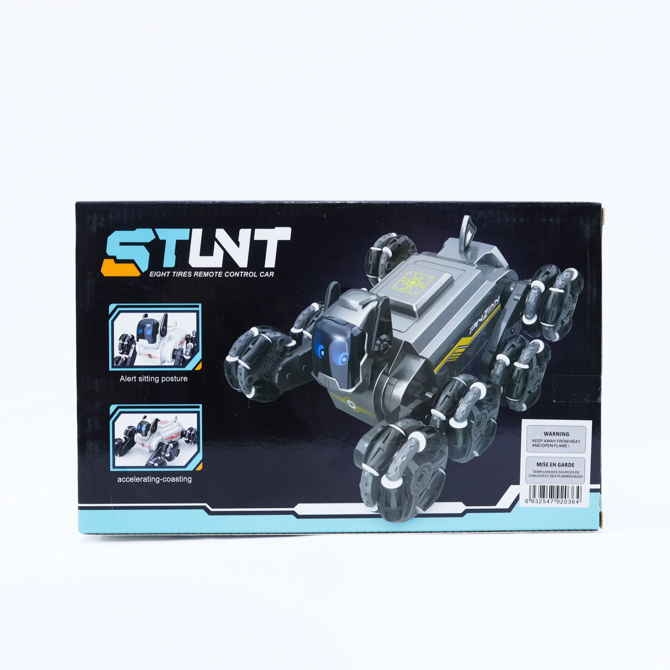Featuring a unique 8-wheel design, this stunt car delivers enhanced stability, powerful movement, and smooth transitions between alert sitting posture and accelerating or coasting modes. Designed for adventurous play, it handles obstacles with ease and offers exciting stunt performance both indoors and outdoors.