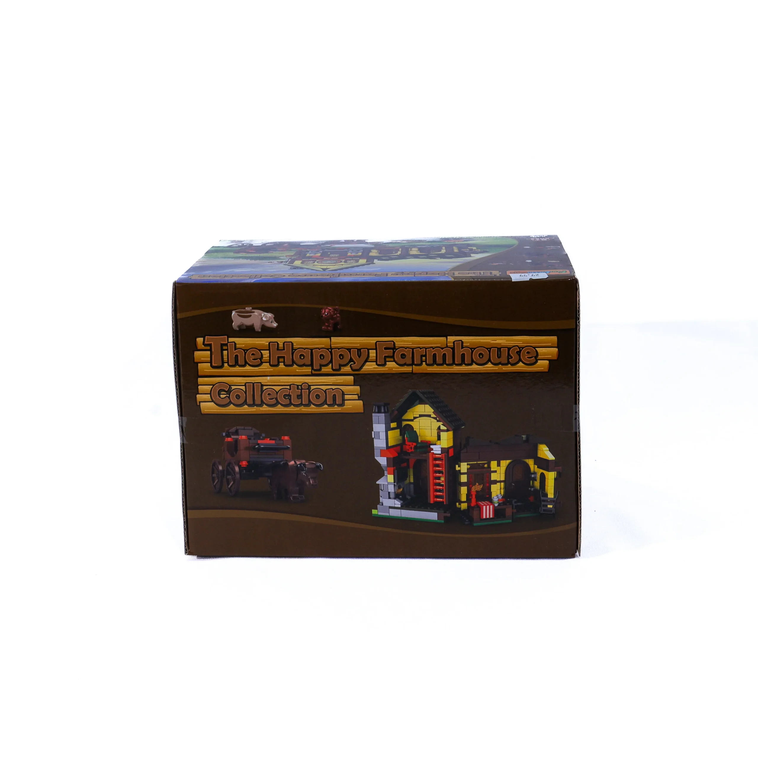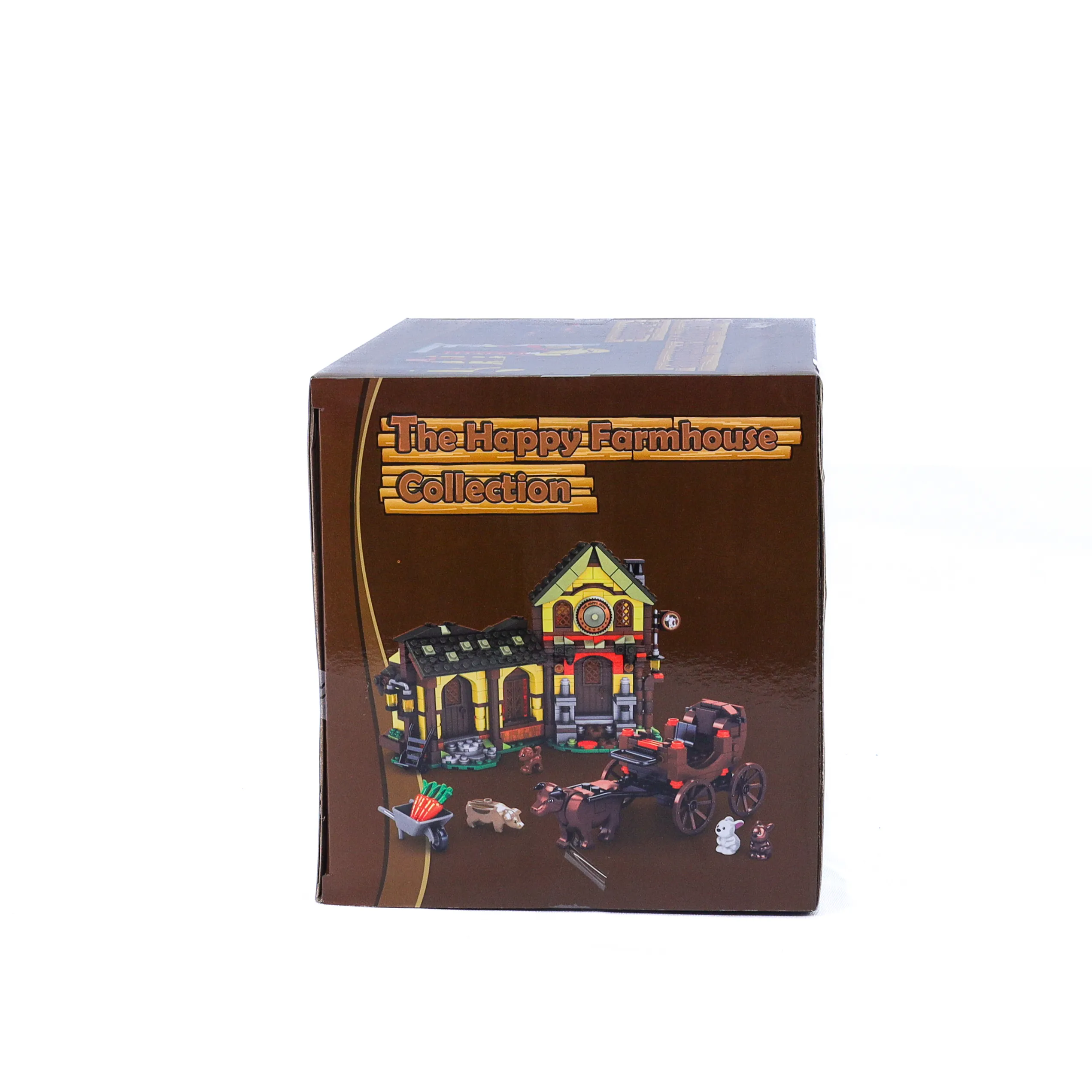 The Happy Farmhouse Collection building blocks set features a charming countryside farmhouse scene with animals, cart, and accessories.